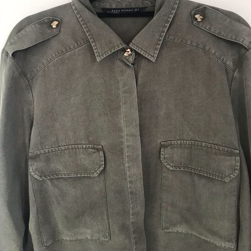 Camisa M xi da Zara Verde Militar Meio Estonado Camisa Feminina Very well made.