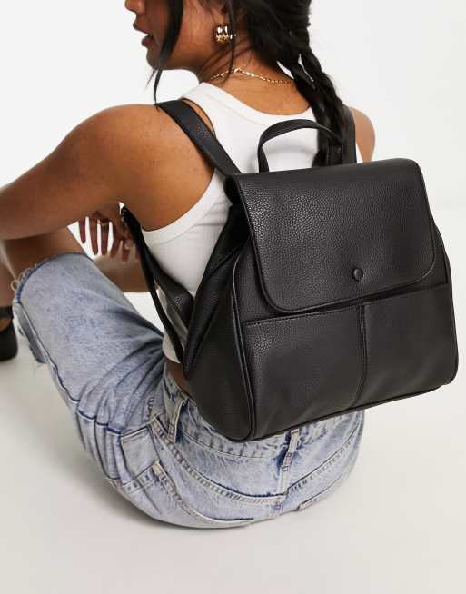 Mochila negra y marr n de cuero con correas dobles de ASOS DESIGN Very well made.