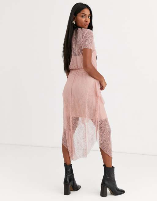 Stradivarius Kanten jurk in roze ASOS Very well made.