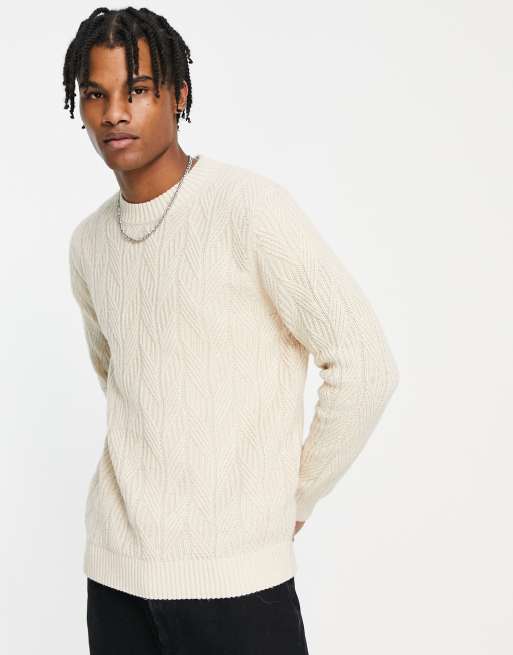 Selected Homme Oversized gebreide kabeltrui in beige ASOS Very well made.
