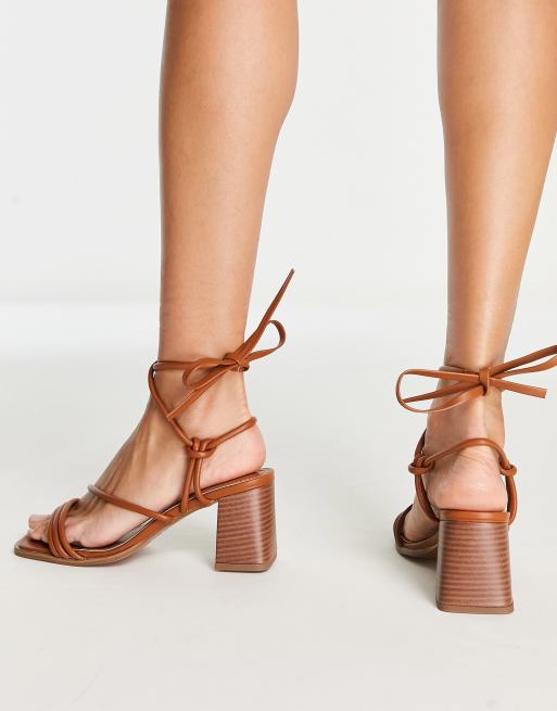 ASOS DESIGN Hollow strappy tie leg mid heeled sandals in tan ASOS Very well made.