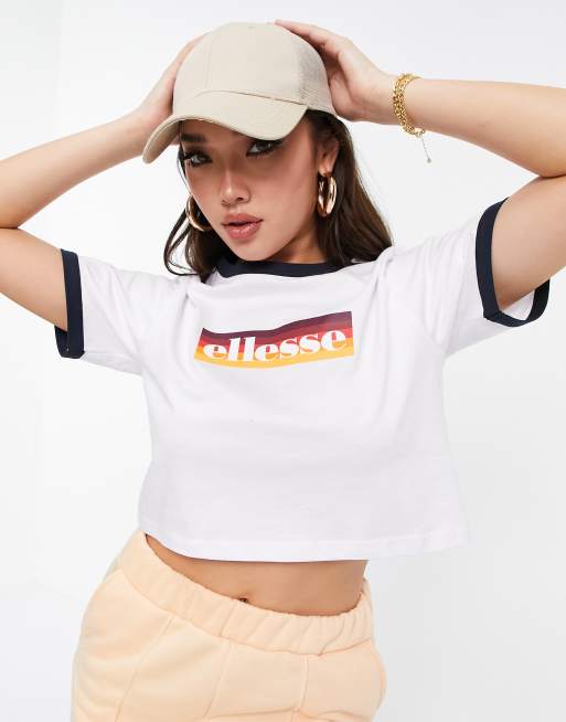 ellesse crop t shirt in white with ombre logo Very well made.
