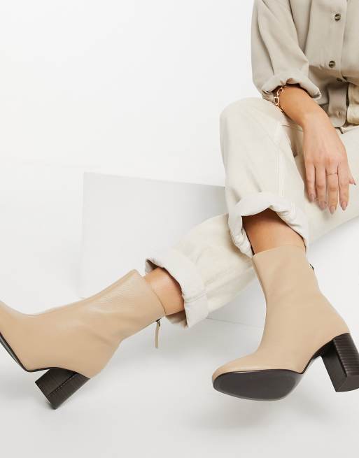 Mango leather heeled boots in beige ASOS Very well made.