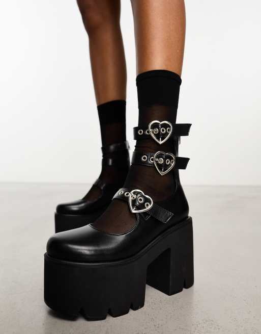 Heart Design Buckle Decor Platform Mary Janes SHEIN Very well made.