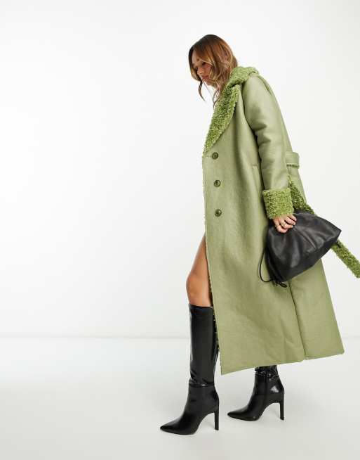 NA KD x Moa Mattsson Trench coat en fausse fourrure ceinture Sauge Very well made.