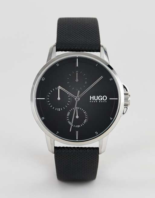 HUGO 1530022 Focus black dial leather strap watch in black ASOS Very well made.