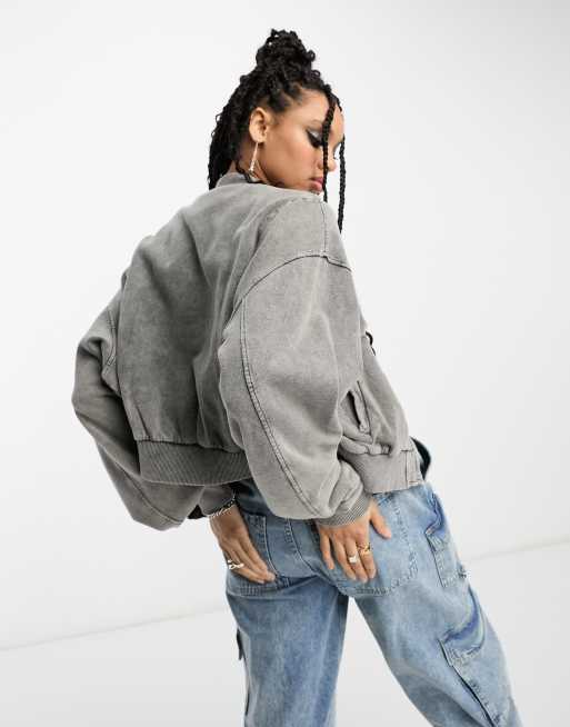 ASOS DESIGN oversized sweat bomber jacket in washed black Very well made.