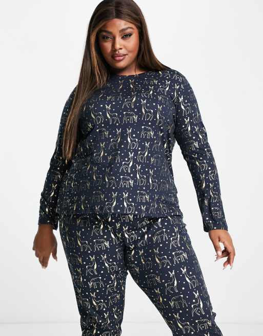 Chelsea Peers Plus christmas reindeer foil pajamas in navy ASOS Very well made.