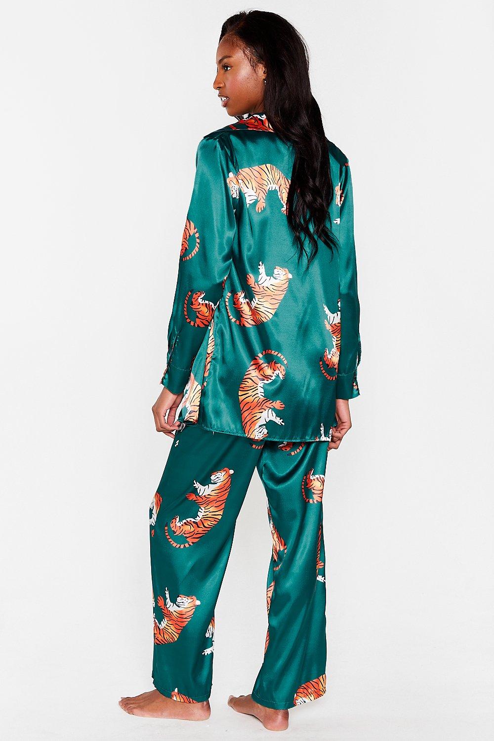 Women s Tiger Silk Pajama Set Mulberry Printed Silk Pajamas Very well made.