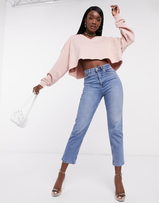 ASOS DESIGN oversized cropped sweatshirt with v neck in mink Very well made.