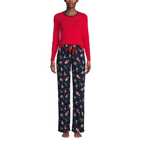 Lands End Women s Knit Pajama Set Long Sleeve T Shirt and Pants X Small Rich Red Multi Tartan Very well made.