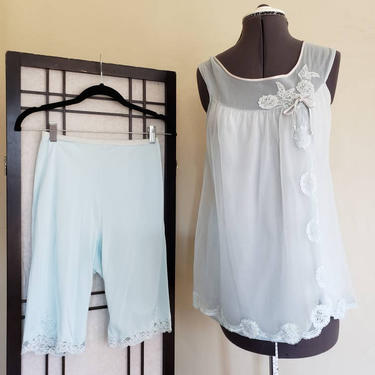 1950s Babydoll Pajamas Set Top Sleeping Shorts 50s Baby Blue Very well made.