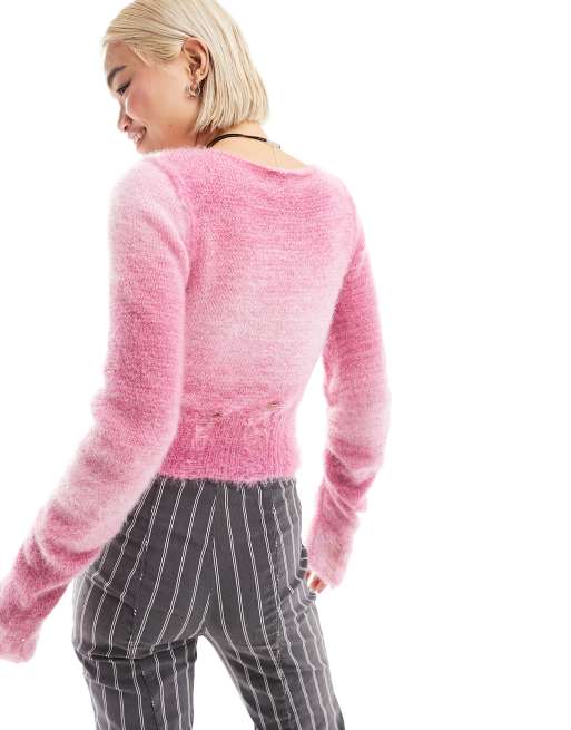 Pink Fluffy V Neck Jumper SALE Motto Very well made.