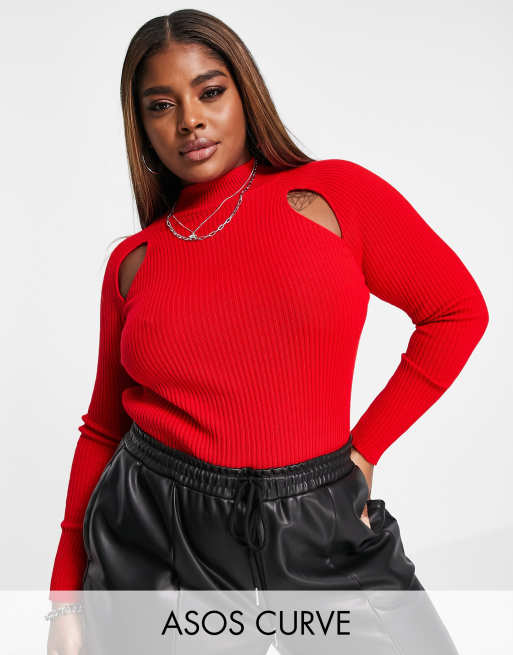 ASOS DESIGN Curve turtle neck jumper in knitted rib with cut out Very well made.