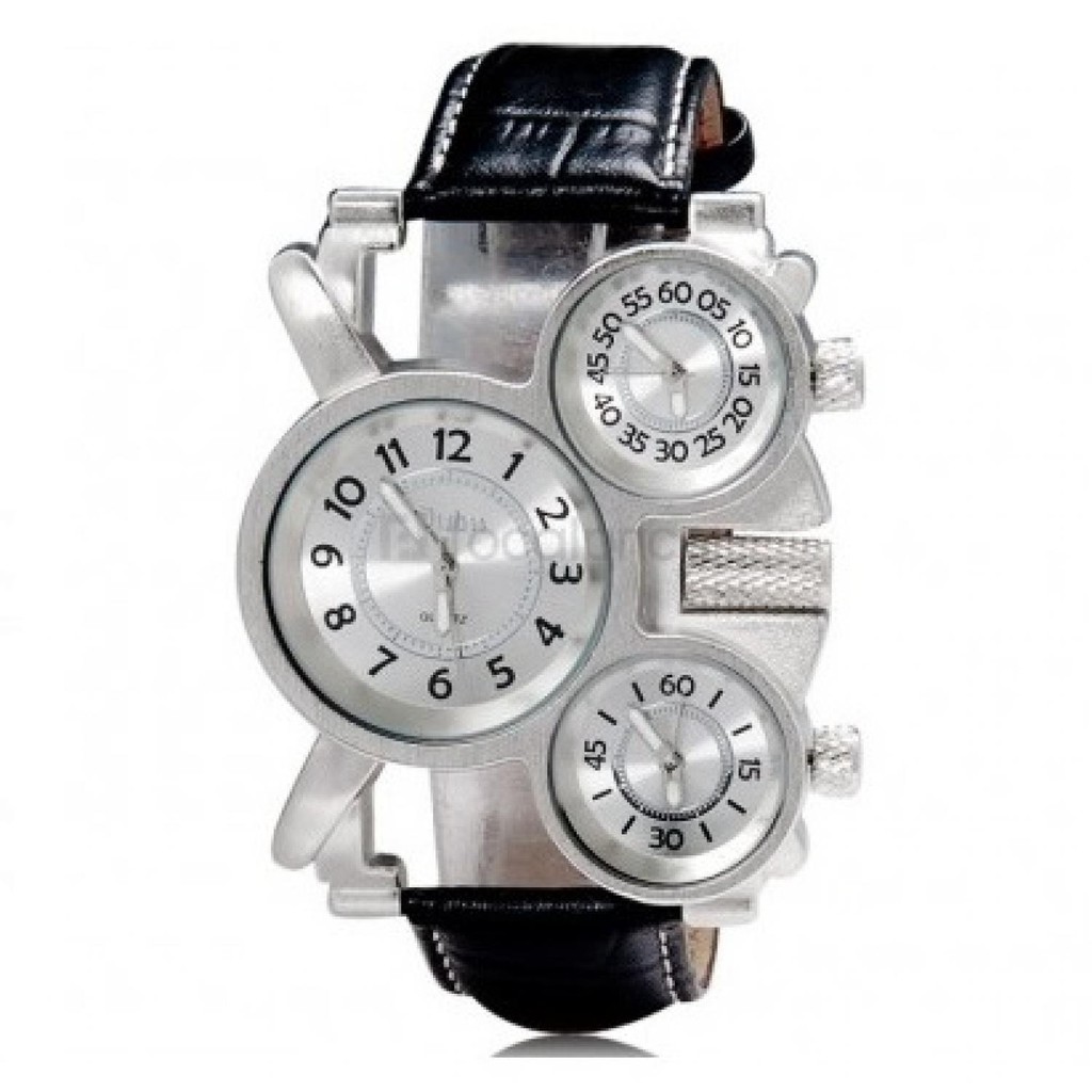 OULM 1167 Mens Steampunk Leather Band Watches 3 Time Zone Casual Very well made.