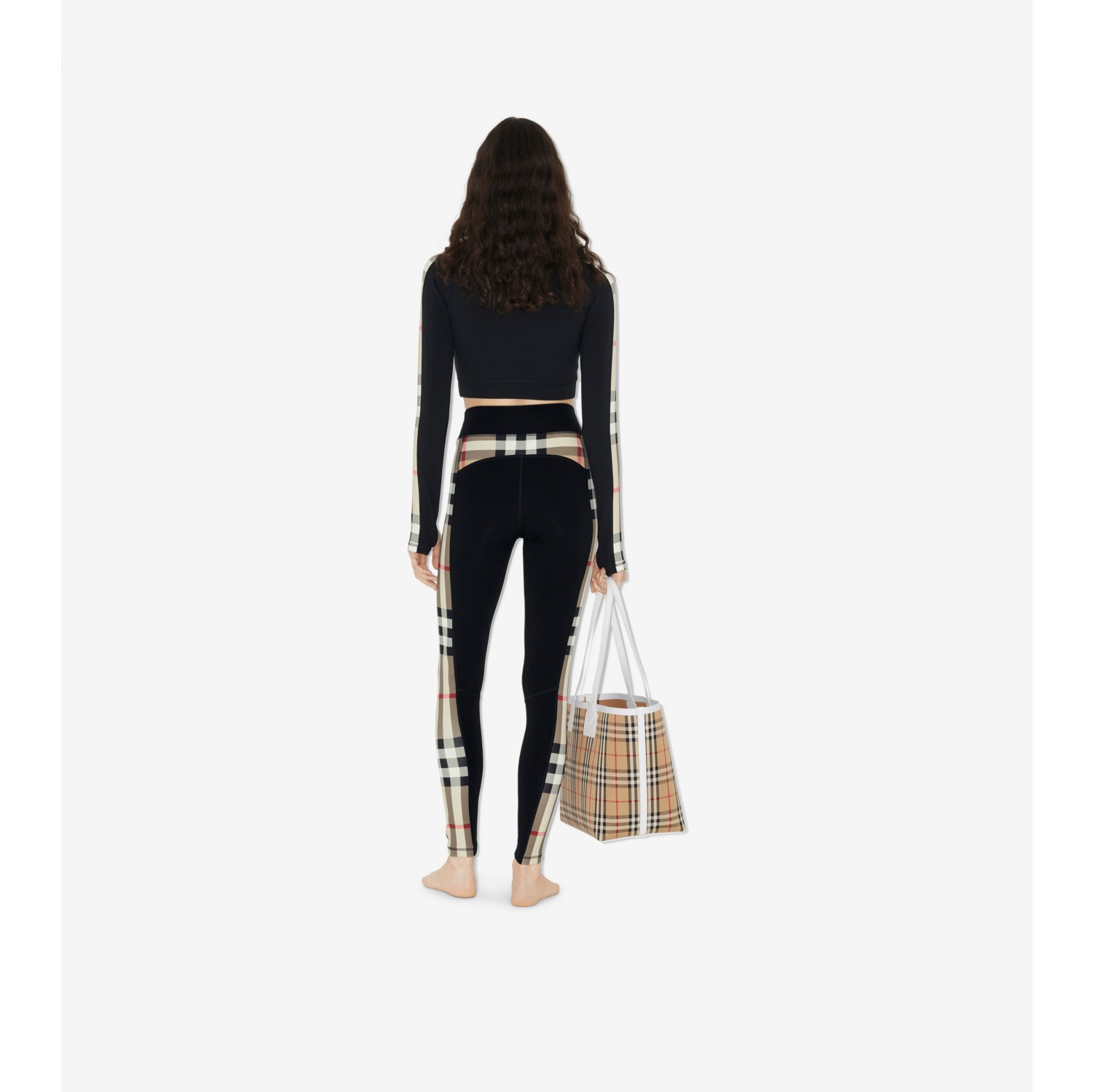 Check Trim Stretch Jersey Leggings in Black Women Nylon Very well made.