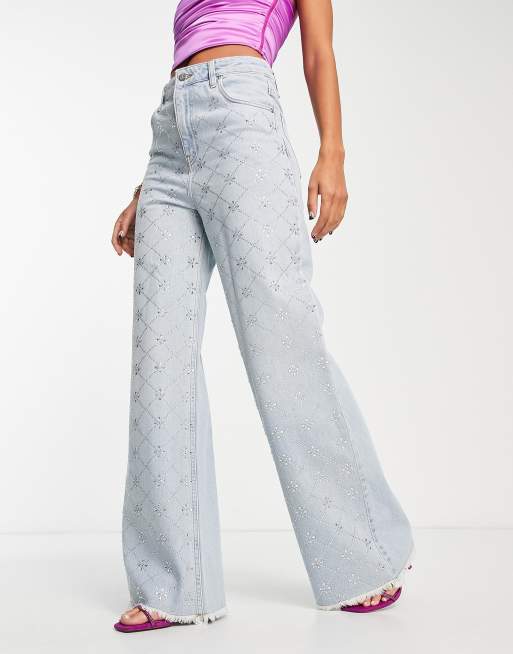 ASOS LUXE denim jeans with all over diamante grid in blue Very well made.
